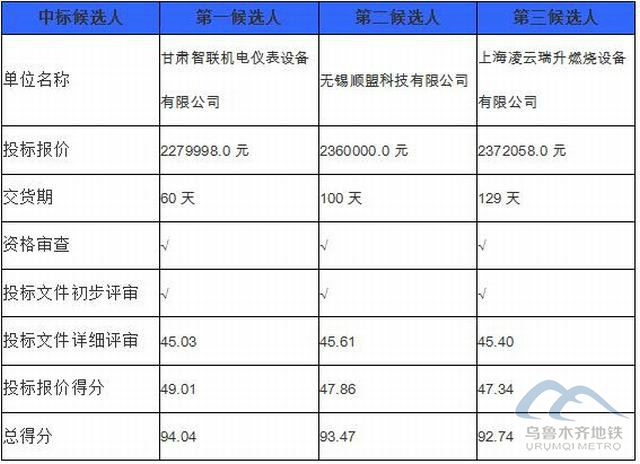 北京中昌工程咨询有限公司受香港和宝典宝典资料的委托对乌鲁木齐轨道交通1号线工程百园路车辆基地燃气锅炉改造项目的招标的评审工作已经结束,评标委员会经过评审后确定了本项目标段的中标候选人,现将中标候选人情况予以公示(时间从2021年04月19日至 2021年04月22日止),中标候选人具体情况如下: