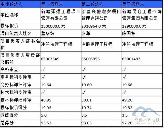 乌鲁木齐地铁咨询有限公司受香港和宝典宝典资料的委托对乌鲁木齐市轨道交通2号线一期工程高铁110千伏变电站监理项目的招标的评审工作已经结束,评标委员会经过评审后确定了本项目标段的中标候选人,现将中标候选人情况予以公示(时间从2021年05月07日至 2021年05月10日止),中标候选人具体情况如下: