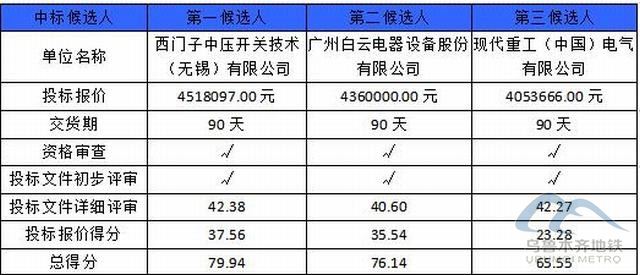 乌鲁木齐地铁咨询有限公司受香港和宝典宝典资料的委托对乌鲁木齐市轨道交通2号线一期工程高铁110千伏变电站35kV气体绝缘金属封闭开关柜(GIS)采购项目进行的招标评审工作已经结束,评标委员会经过评审后确定了本项目标段的中标候选人,现将中标候选人情况予以公示(时间从2021年07月29日至 2021年07月31日止),中标候选人具体情况如下:
